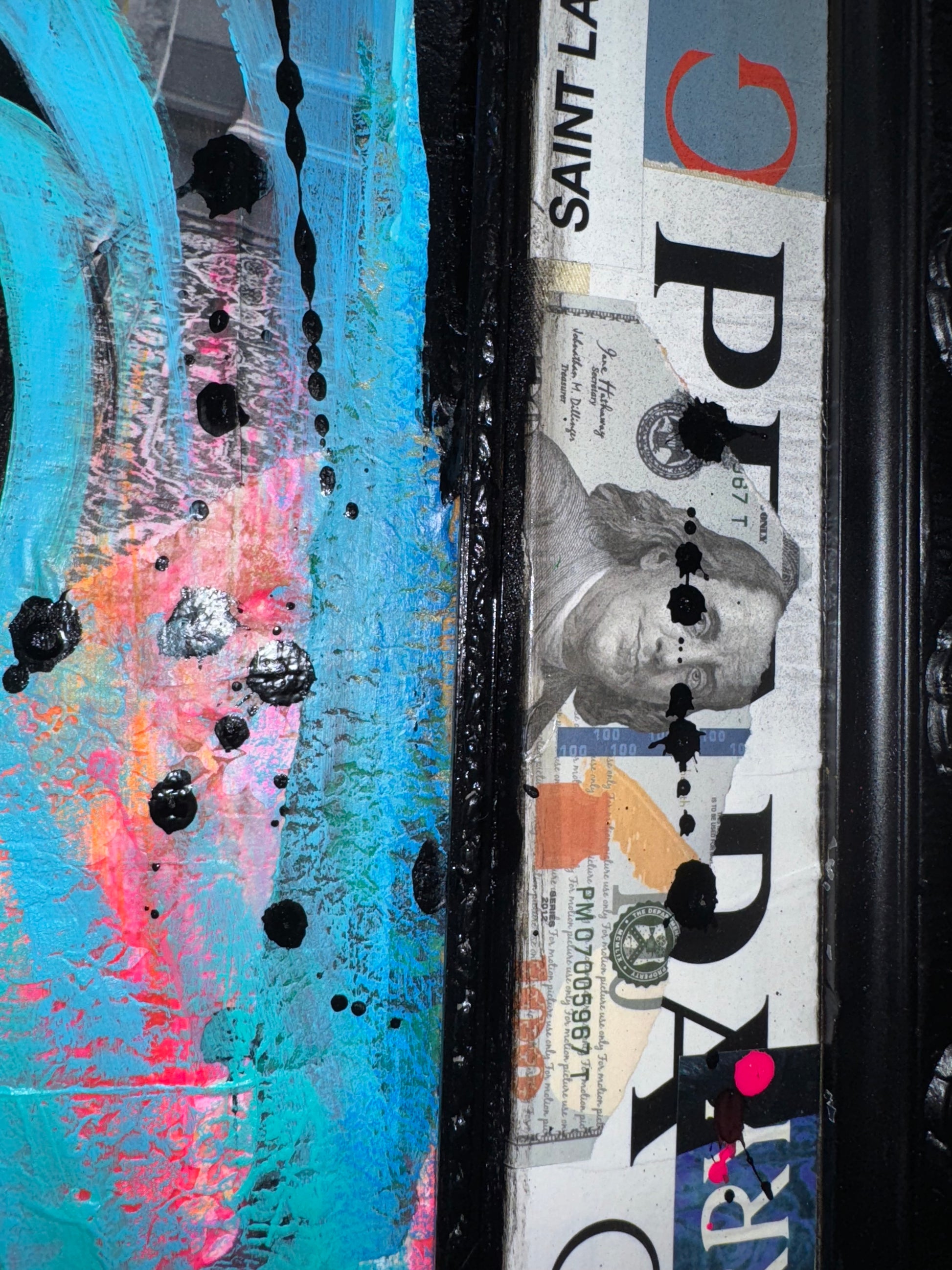 30x40 in. Acrylic and mixed media on panel. Framed.