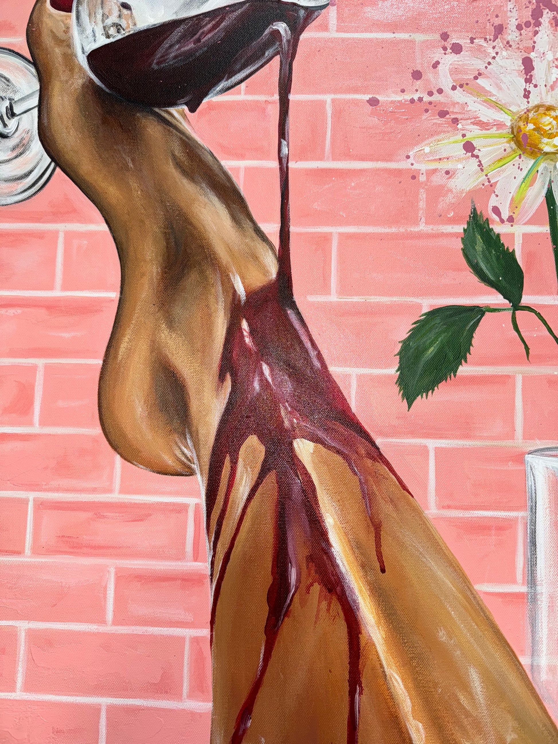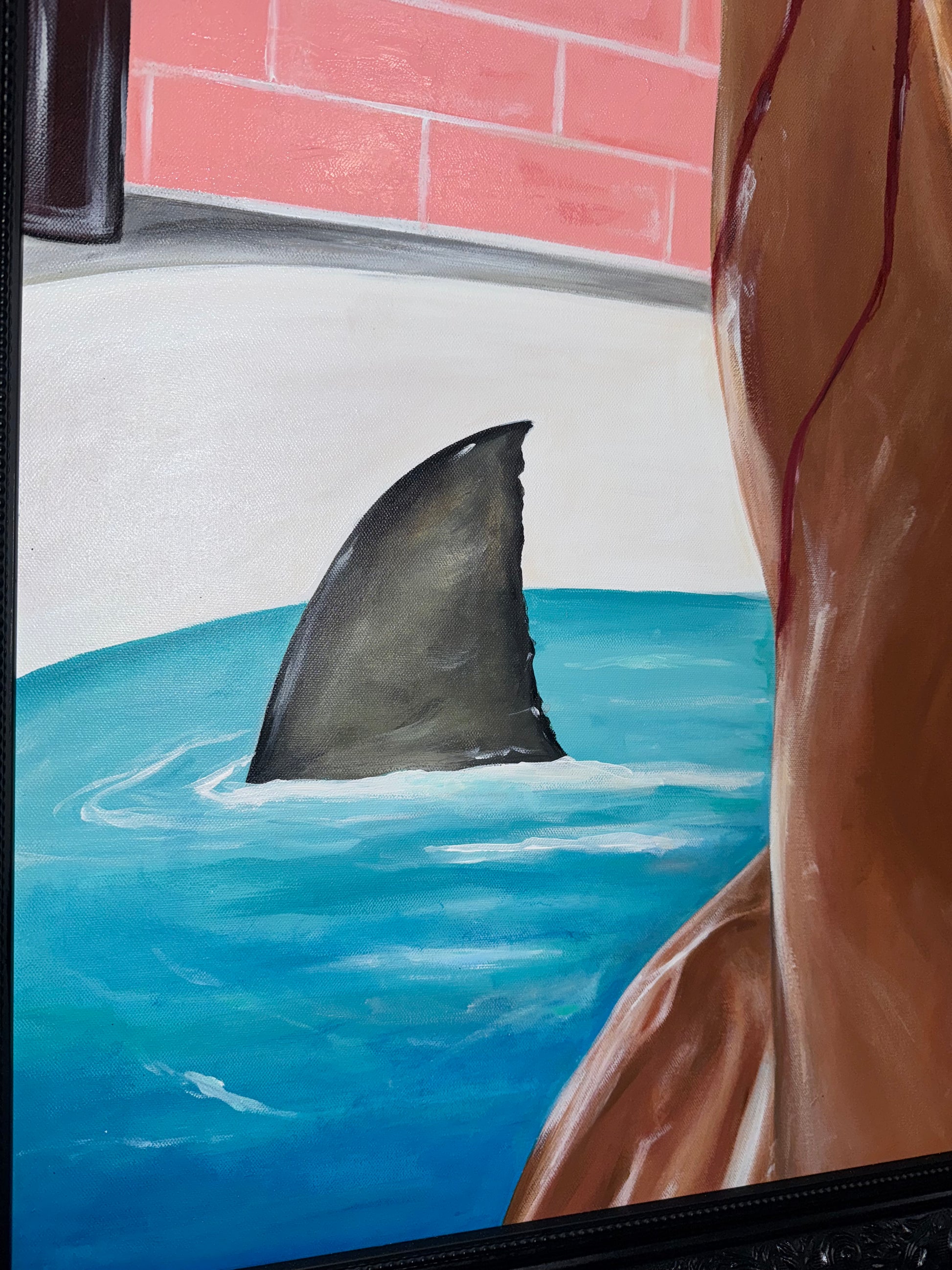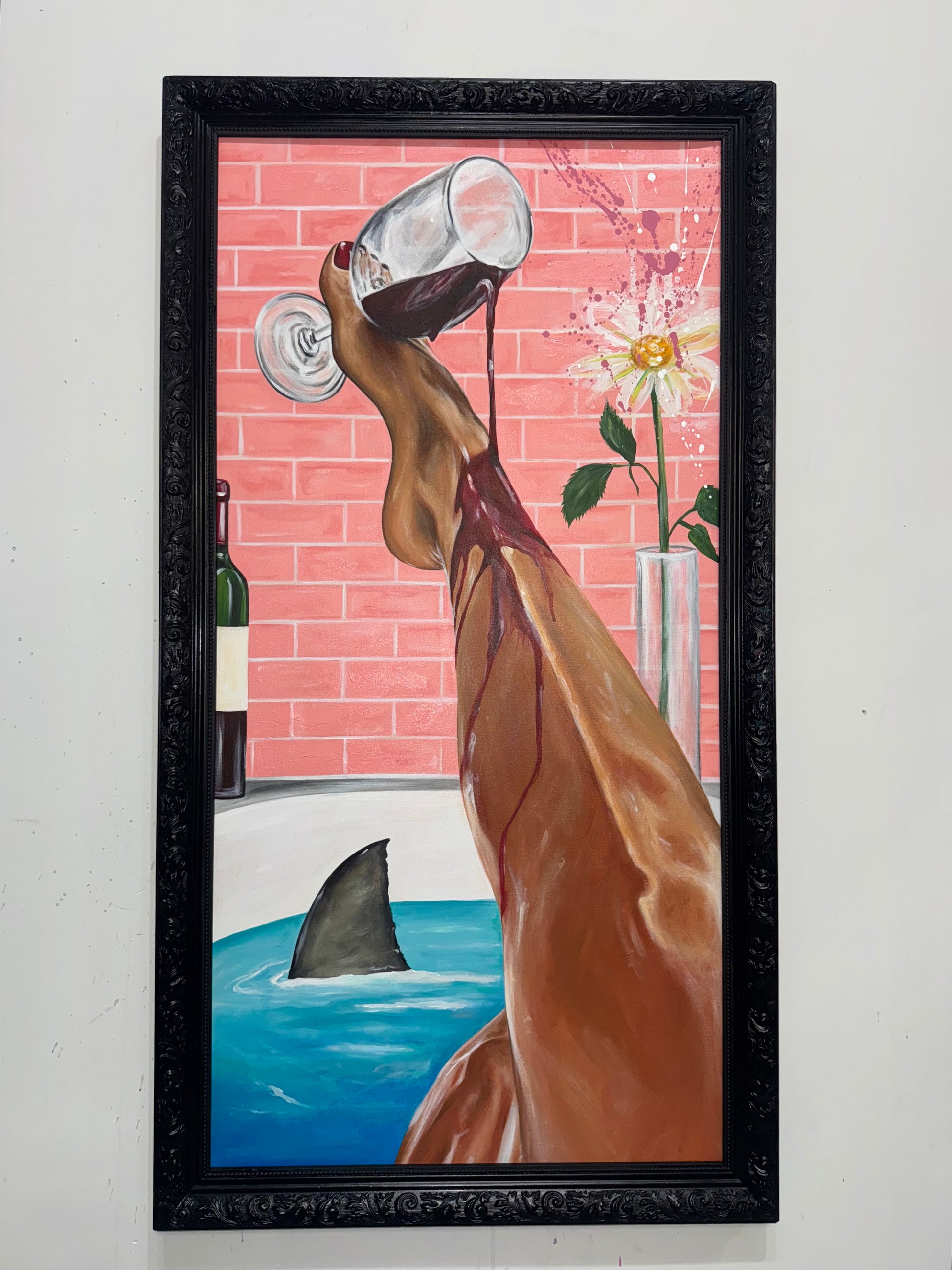 28x51 in. Acrylic on canvas. Vintage sourced frame.